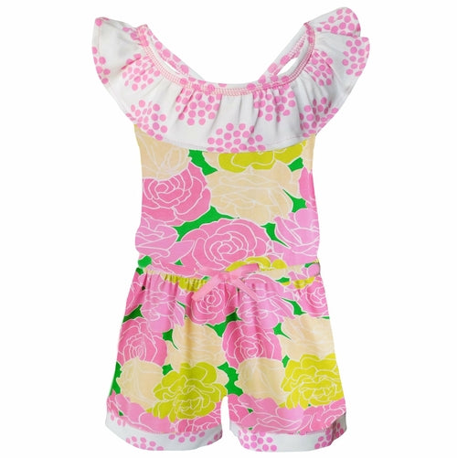 AnnLoren Girls Pink Bloom Floral Shorts Jumpsuit Summer One Piece