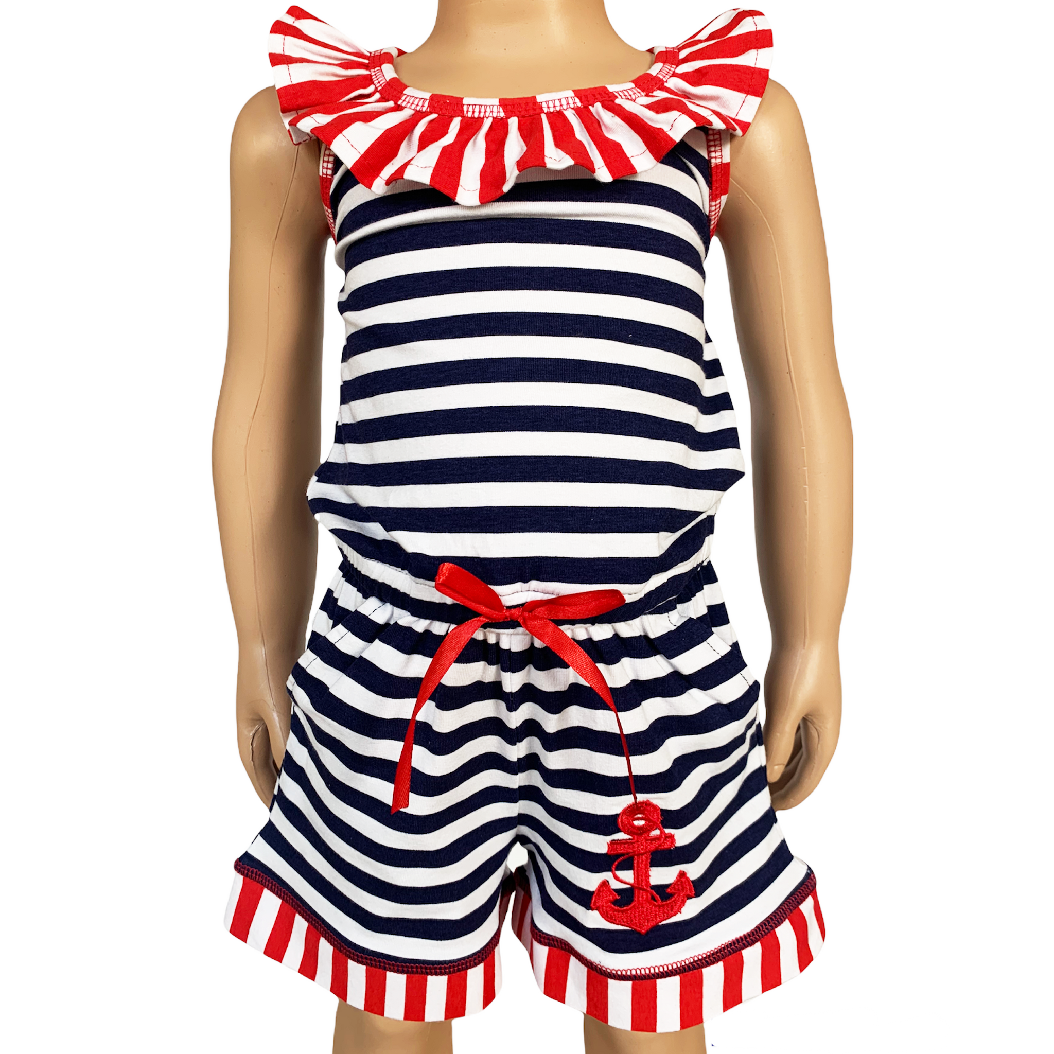 AnnLoren Girls Anchors Away Nautical Jumpsuit Summer Romper