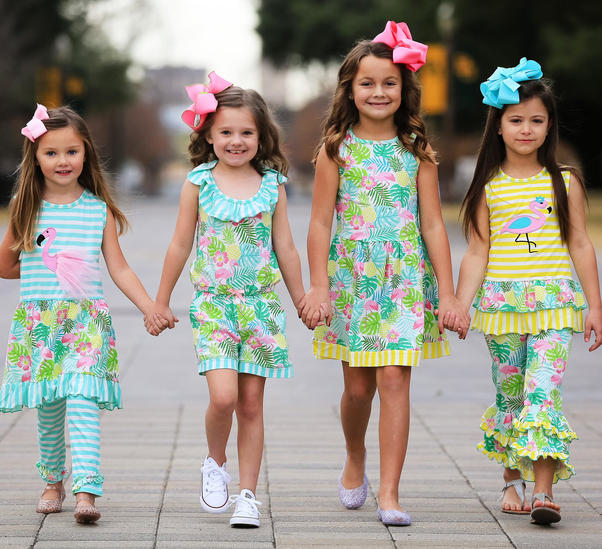 AnnLoren Little & Big Girls Pink Flamingo Palm Tree Kids Shorts