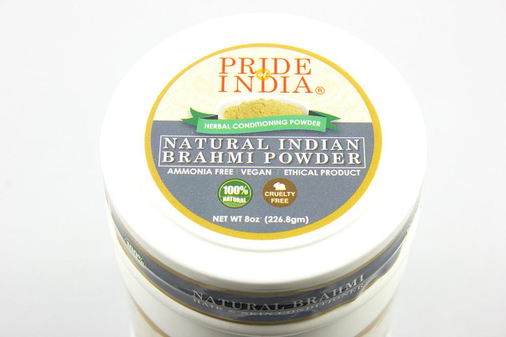 Brahmi is a plant native to India, and is known for its medicinal uses in ayurveda. Pride Of India 'Brahmi' powder is a herbal alternative used to soothe the skin and scalp. It clears the skin from blemishes and promotes healthy hair growth. This product can be used as a facial mask and hair conditioner. It is 100% pure and does not contain any artificial chemicals or ammonia inside. Suggestions - For a voluminous and lustrous hair color, we recommend mixing our Brahmi powder with our henna or Indigo hair color powders. For a fresher cleaner and smoother skin experience, mix our Fuller's earth powder and add milk or yogurt for a additional moisturizing effect.