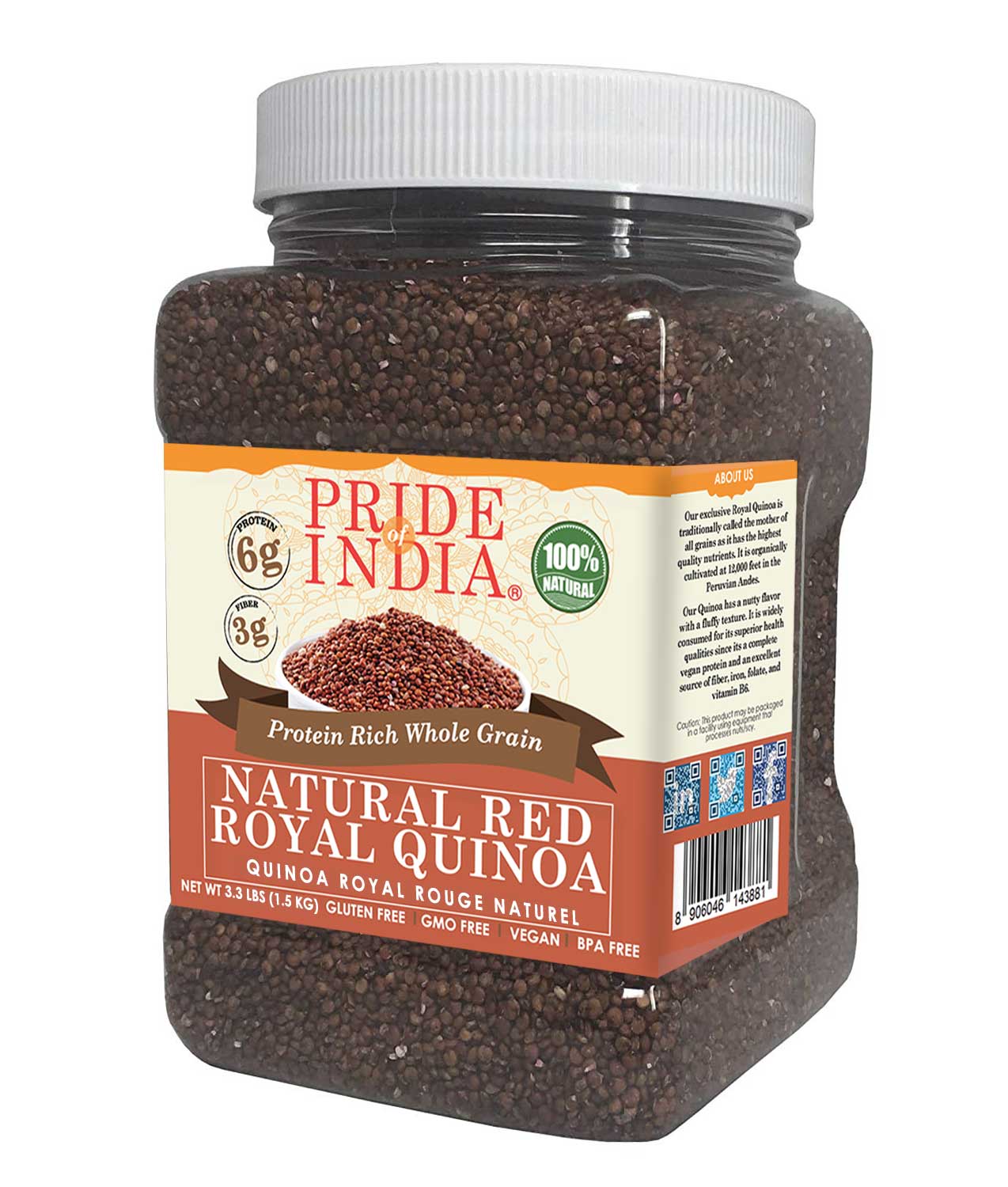 • Sustainably Grown: We at Pride of India believe in giving back to the community and Mother Nature. Sustainable cultivation is our motto leaving behind fewer carbon prints and making the earth a better place to live. Our Ntaural Red Royal Quinoa is cultivated through sustainable farming methods preserving the scarce resources and ensuring only the best gets to your table.