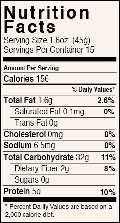 Protein & Fiber Rich - 5 grams Protein & 2 grams Dietary Fiber Per Serving