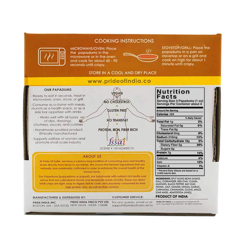 • Pure Mung Dal Plain Papadum (Moong Dal Sada Papad Lentil Crisp) - Sealed in 3.53oz Pack (10 pieces/pack)