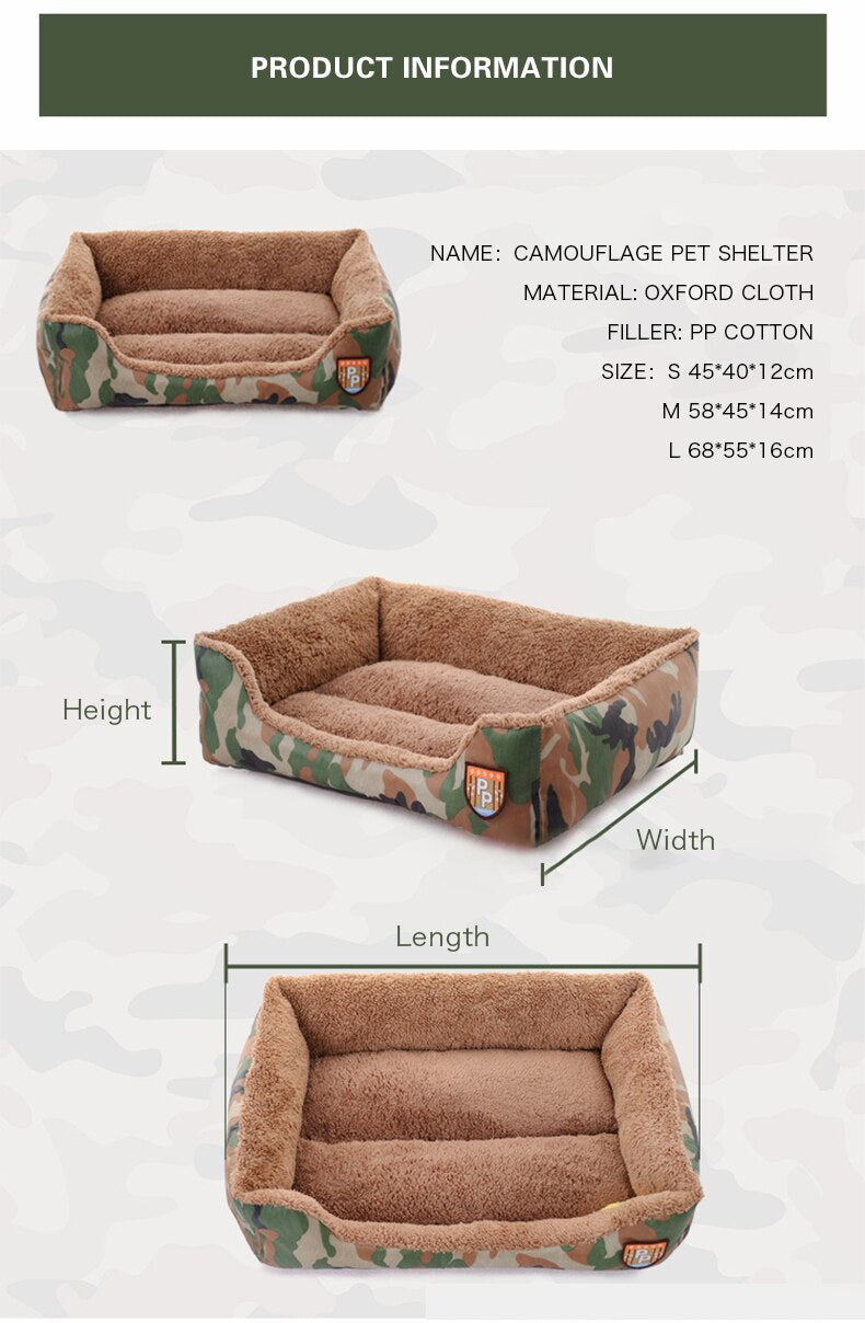 Pet Dog Bed Military Style Camouflage Kennel Washable House Warm Mat