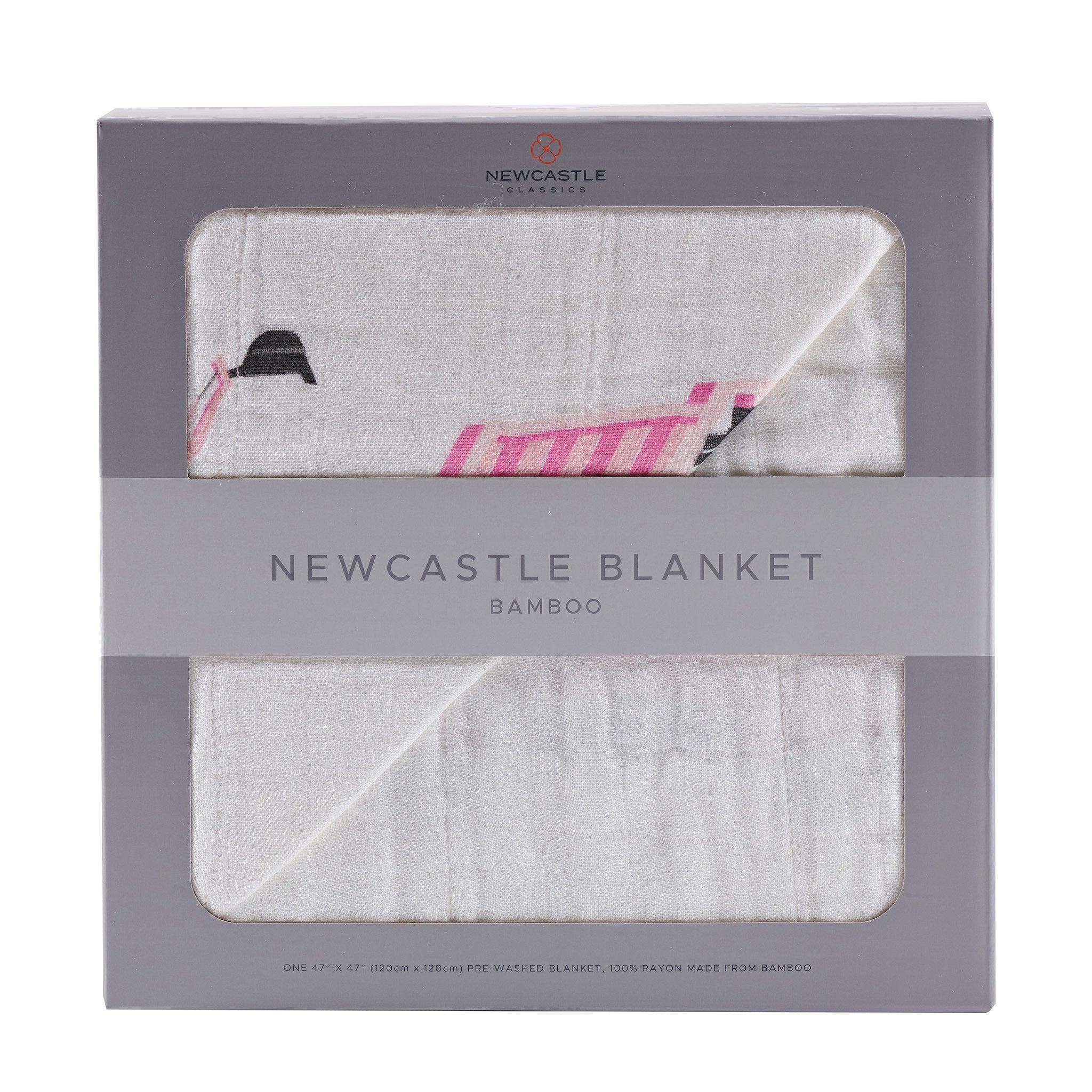 Pink Digger and White Bamboo Muslin Newcastle Blanket